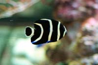 幼魚のうちは黒地にクリームイエローのストライプが入り、